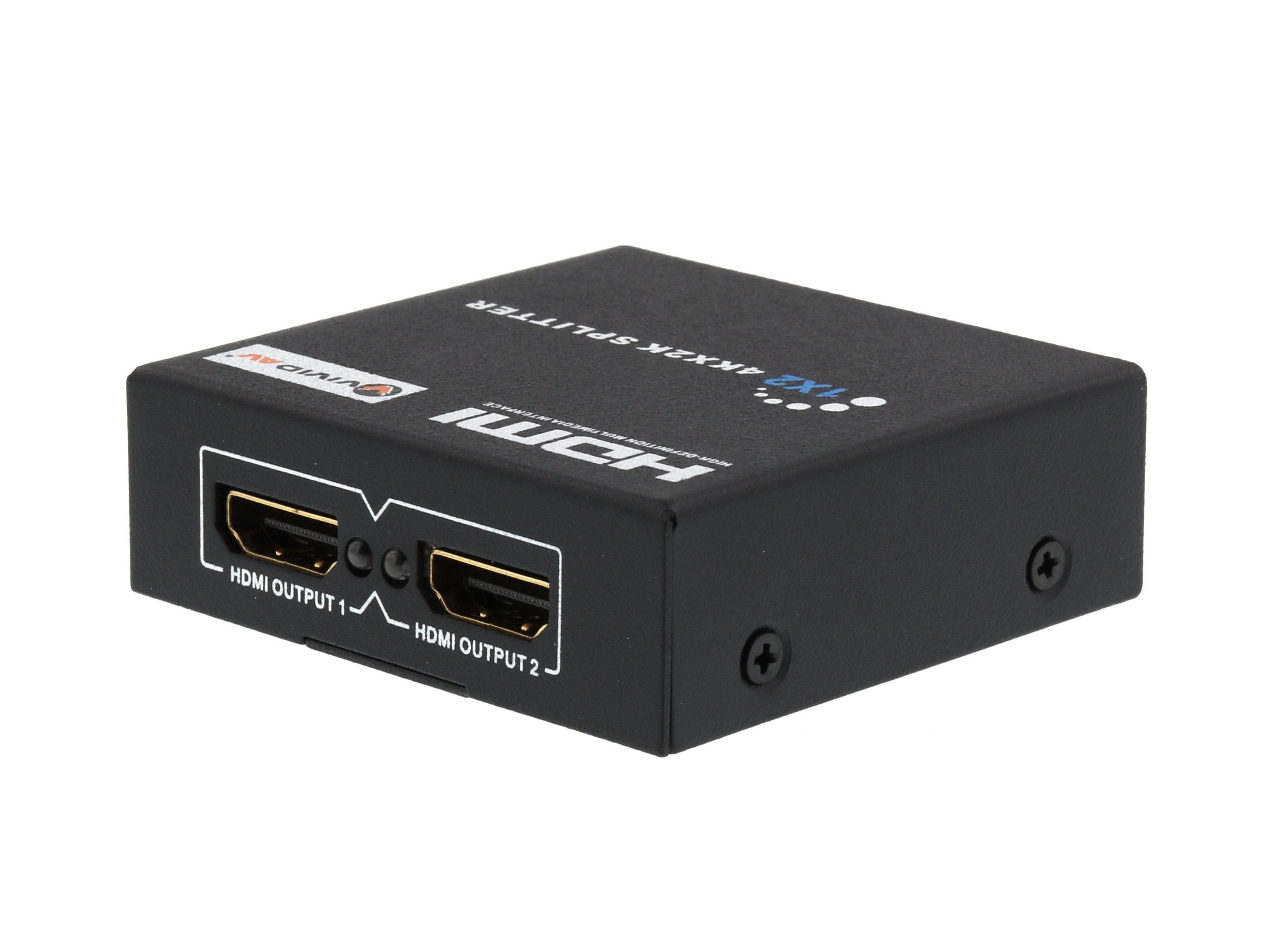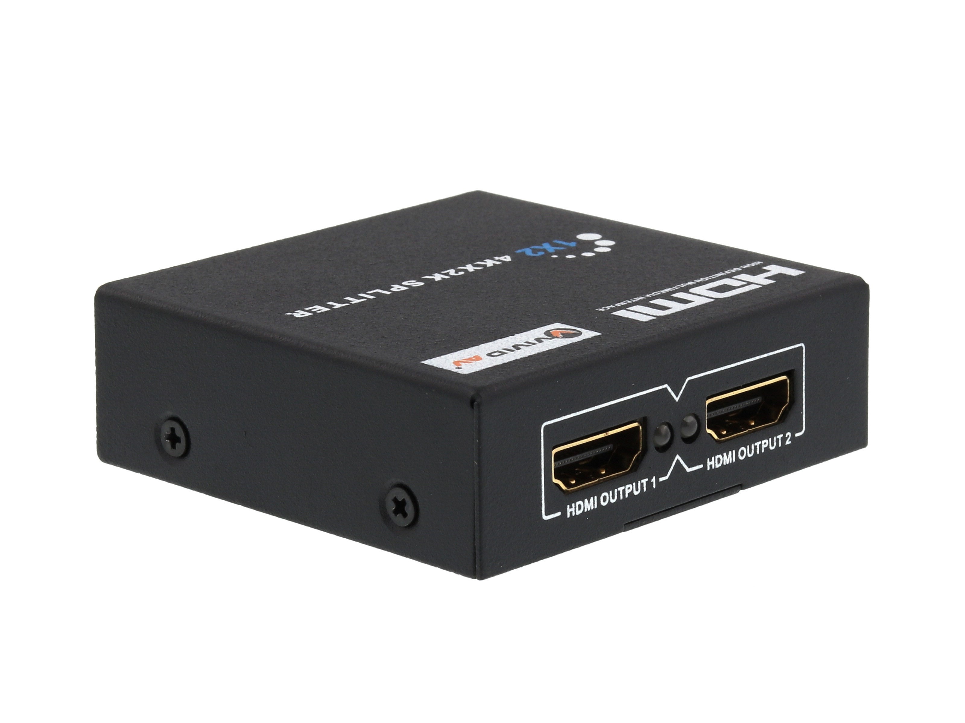 Get the most out of your HDMI setup with this 1x2 HDMI Splitter from Vivid AV®. It supports 1080p, Full 3D, 4Kx2K, and Ultra HD. With a built in amplifier, this splitter can send an HDMI signal beyond the 15 meter limitation. With HDCP built in to this devices, you will have uninterrupted High Definition video at your disposal. The AV-HDMISP2014K will work with all HDMI equipped devices such as set-top boxes, DVD/Blu-Ray Players, Home Theater PCs and many other HDMI devices and displays. Vivid AV® HDMI splitters come in either 2 or 4 ports. You can be assured that Vivid AV® HDMI splitters will be able to handle any job thrown at them.