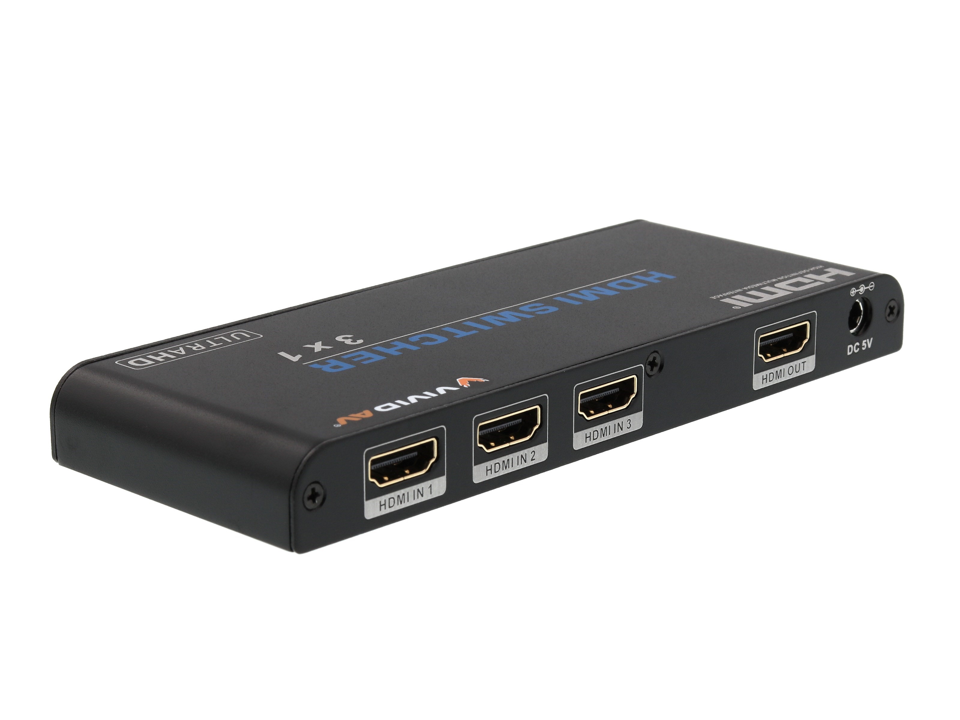High performance HDMI switches from Vivid AV® offer an easy solution when needing to add extra HDMI ports to a TV or Monitor. The AV-HDMI2SW301 is a 3 port HDMI 2.0 switch will allow easy switching from one device to another with the simple press of a button. HDMI 2.0 nearly doubles the bandwith capabilities of HDMI without the need to replace existing cabling. With the digital landscape changing constantly, it is hard to keep up with all of the new technologies. This HDMI switch has Full HD (1080p), 3D, Ultra HD(4K), and HDCP support. Audio will never be a problem here, the AV-HDMI2SW301 supports uncompressed audio such as LPCM 7.1 CH and many uncompressed formats such as DTS Digital, Dobly Digital, DTS-HD and Dolby True HD.