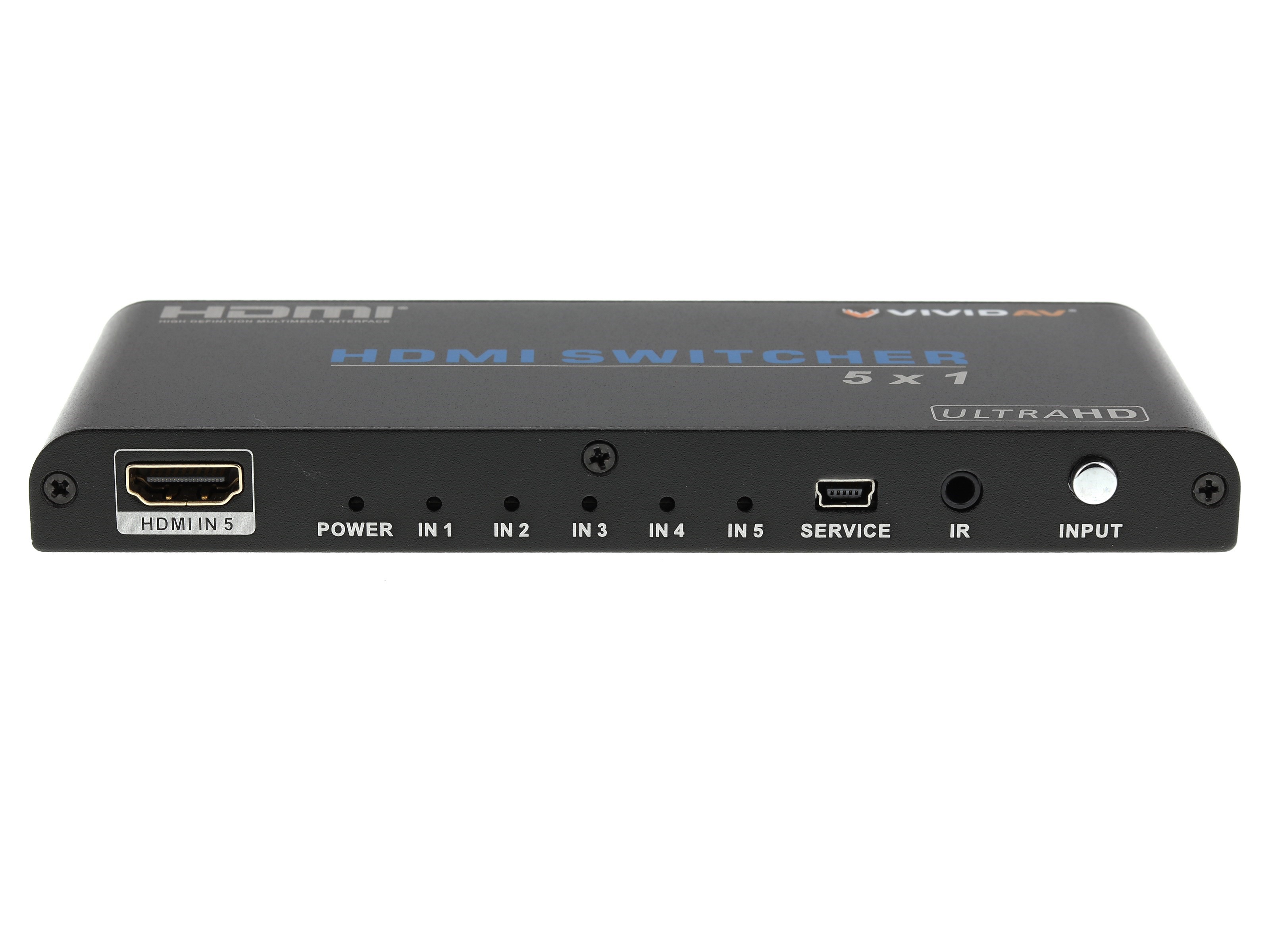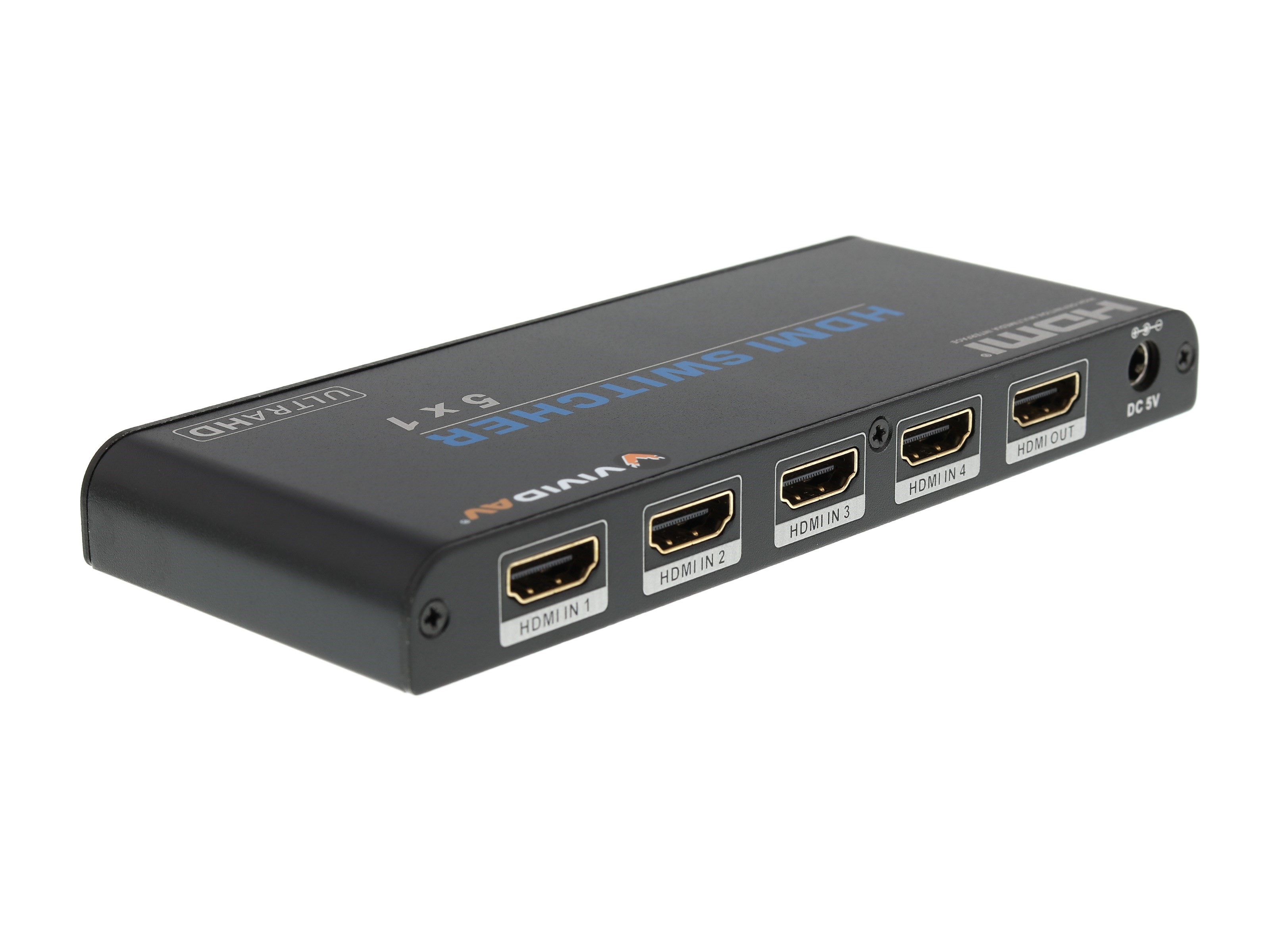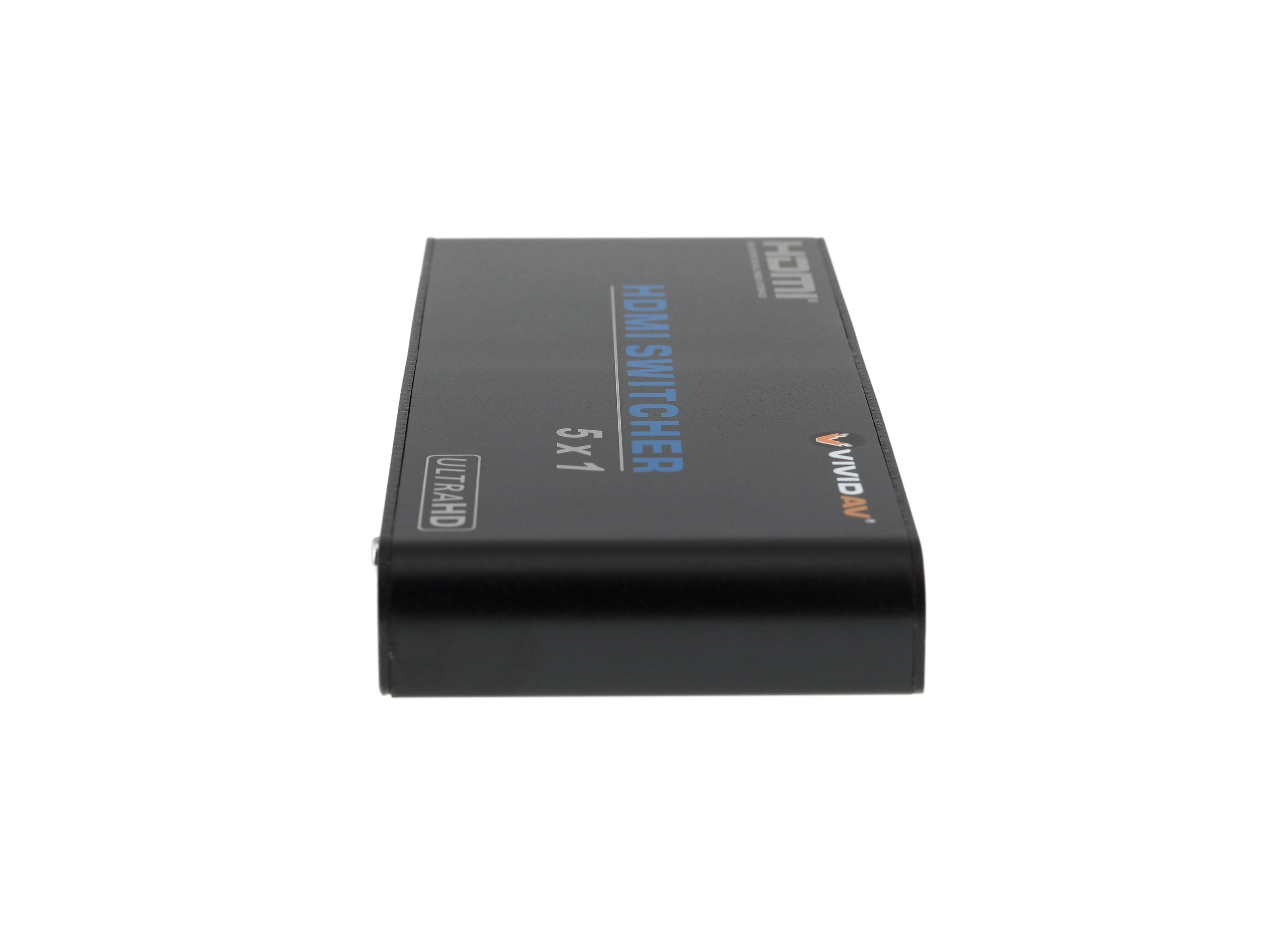 High performance HDMI switches from Vivid AV® offer an easy solution when needing to add extra HDMI ports to a TV or Monitor. The AV-HDMI2SW501 is a 5 port HDMI 2.0 switch will allow easy switching from one device to another with the simple press of a button. HDMI 2.0 nearly doubles the bandwith capabilities of HDMI without the need to replace existing cabling. With the digital landscape changing constantly, it is hard to keep up with all of the new technologies. This HDMI switch has Full HD (1080p), 3D, Ultra HD(4K), and HDCP support. Audio will never be a problem here, the AV-HDMI2SW501 supports uncompressed audio such as LPCM 7.1 CH and many uncompressed formats such as DTS Digital, Dobly Digital, DTS-HD and Dolby True HD.